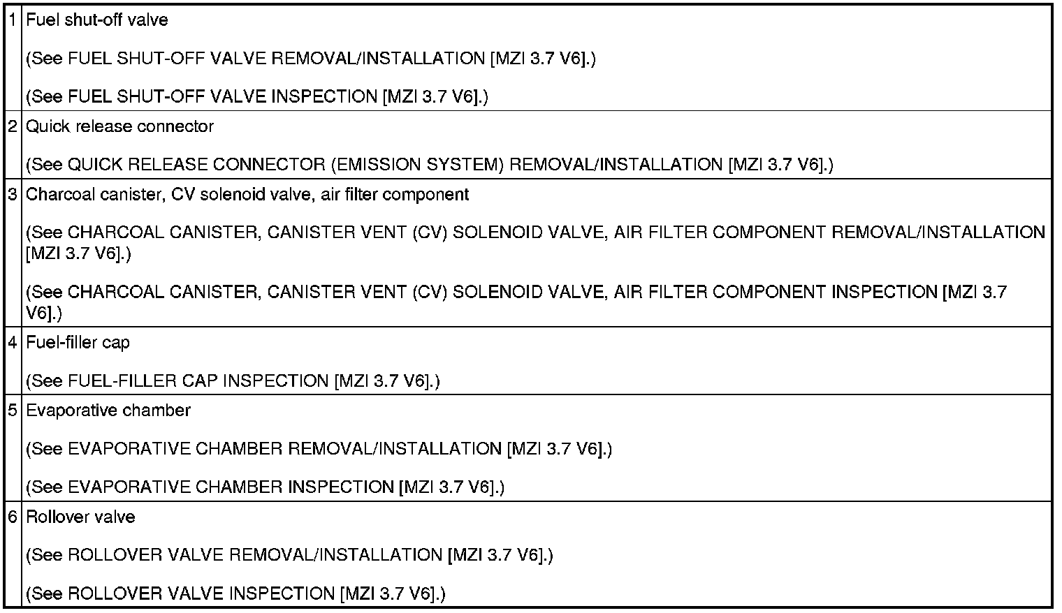 EMISSION SYSTEM LOCATION INDEX [MZI 3.7 V6]