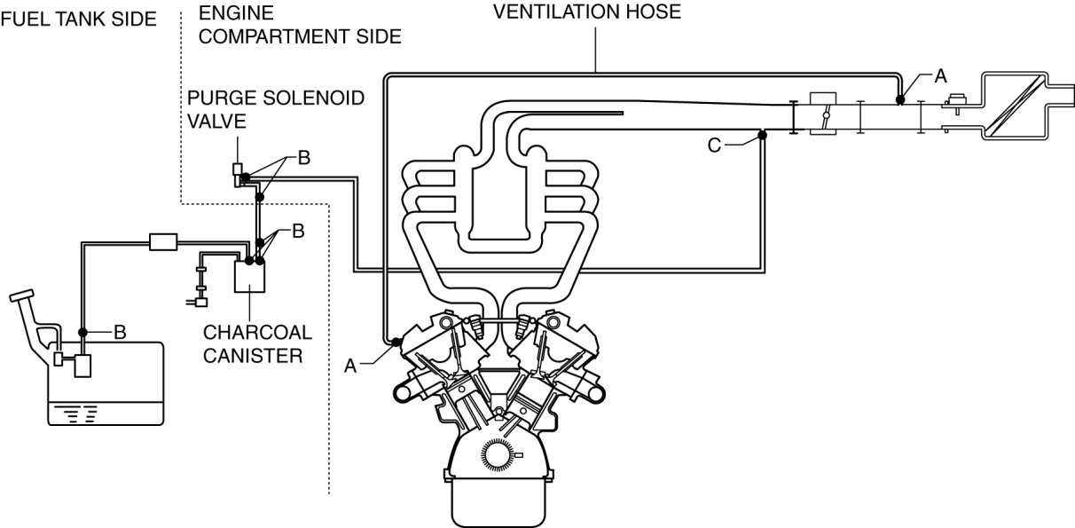 1. Inspect the evaporative hose and evaporative pipe sealing surface for damage and deformation.