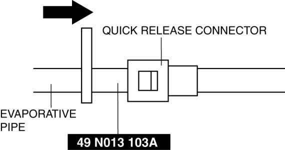 - A checker tab is integrated with the quick release connector for new evaporative hoses. Remove the checker tab from the quick release connector after the connector is completely engaged with the evaporative pipe.