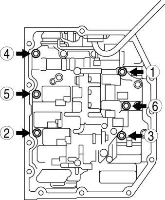 20. Remove the control valve body installation bolts in the order shown in the figure.