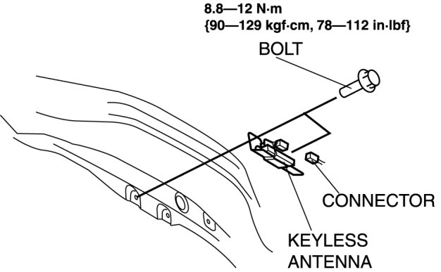 3. Disconnect the connector, then remove the keyless antenna.