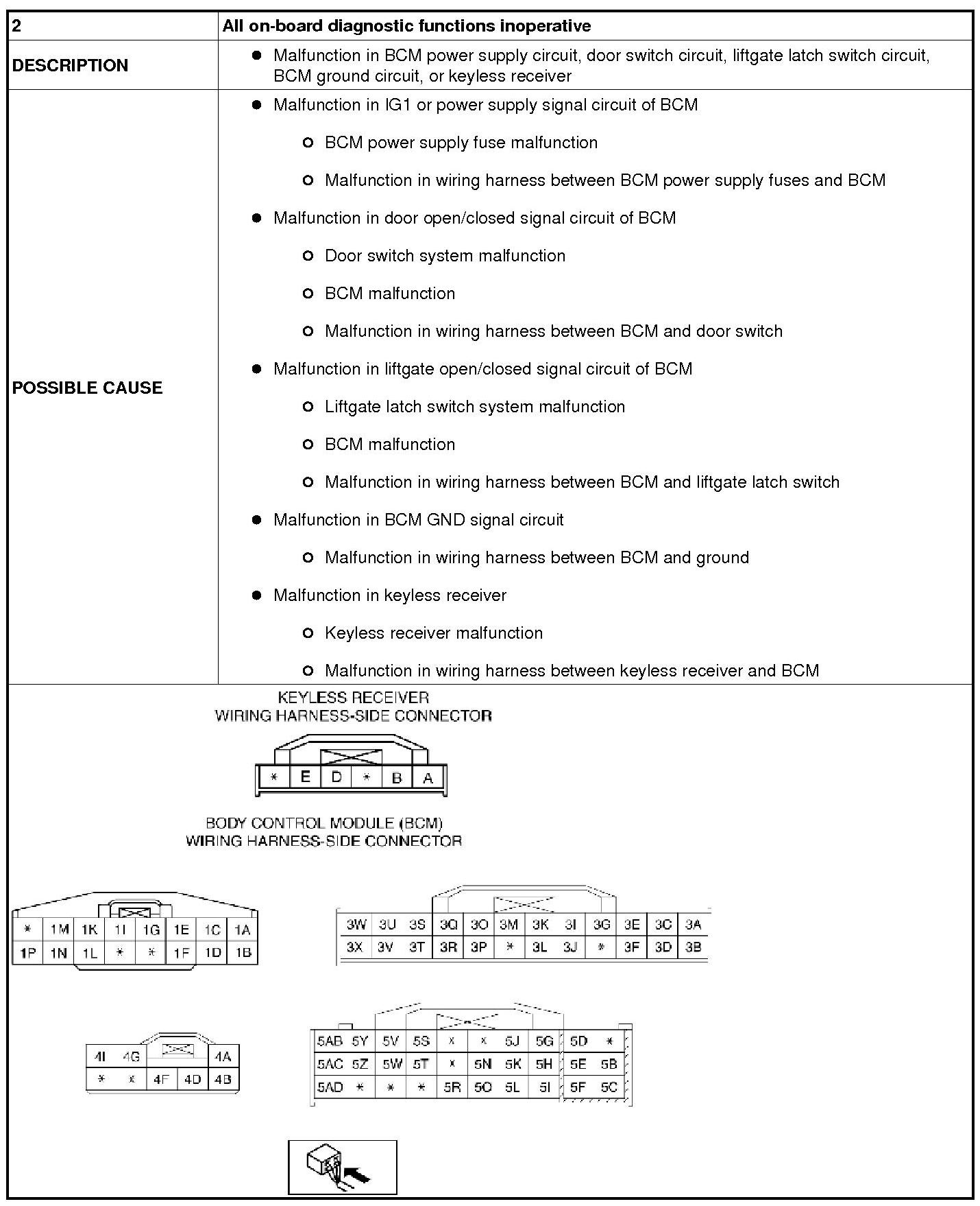 NO.2 ALL ON-BOARD DIAGNOSTIC FUNCTIONS INOPERATIVE [KEYLESS ENTRY SYSTEM]