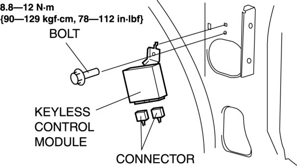 5. Remove the bolt, then remove the keyless control module.