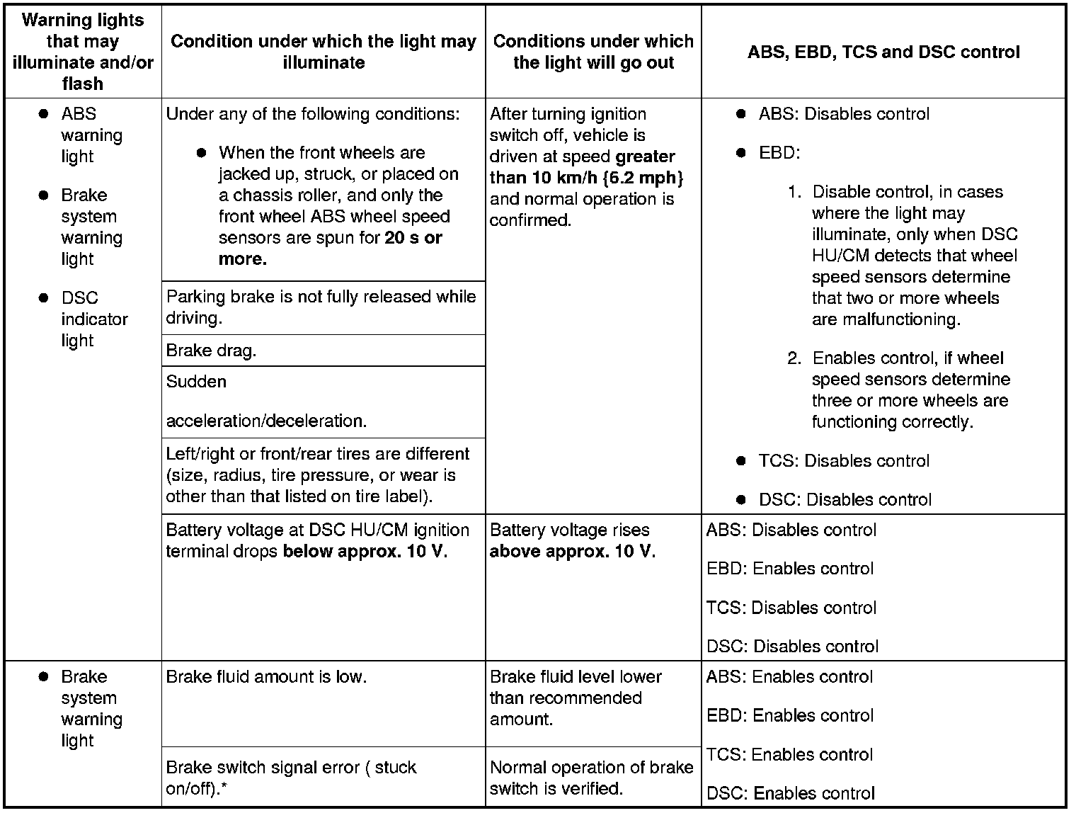 - The control module has an on-board diagnostic function. With this function, the ABS warning light and/or brake system warning light and/or DSC indicator light and/or TCS OFF light will illuminate when there is a problem in the electrical system.