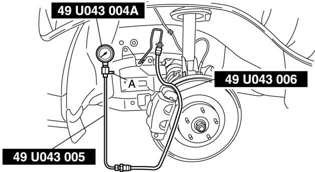 5. Bleed the brake line and the SSTs of air. Bleed the air from the SSTs using bleeder screw A.