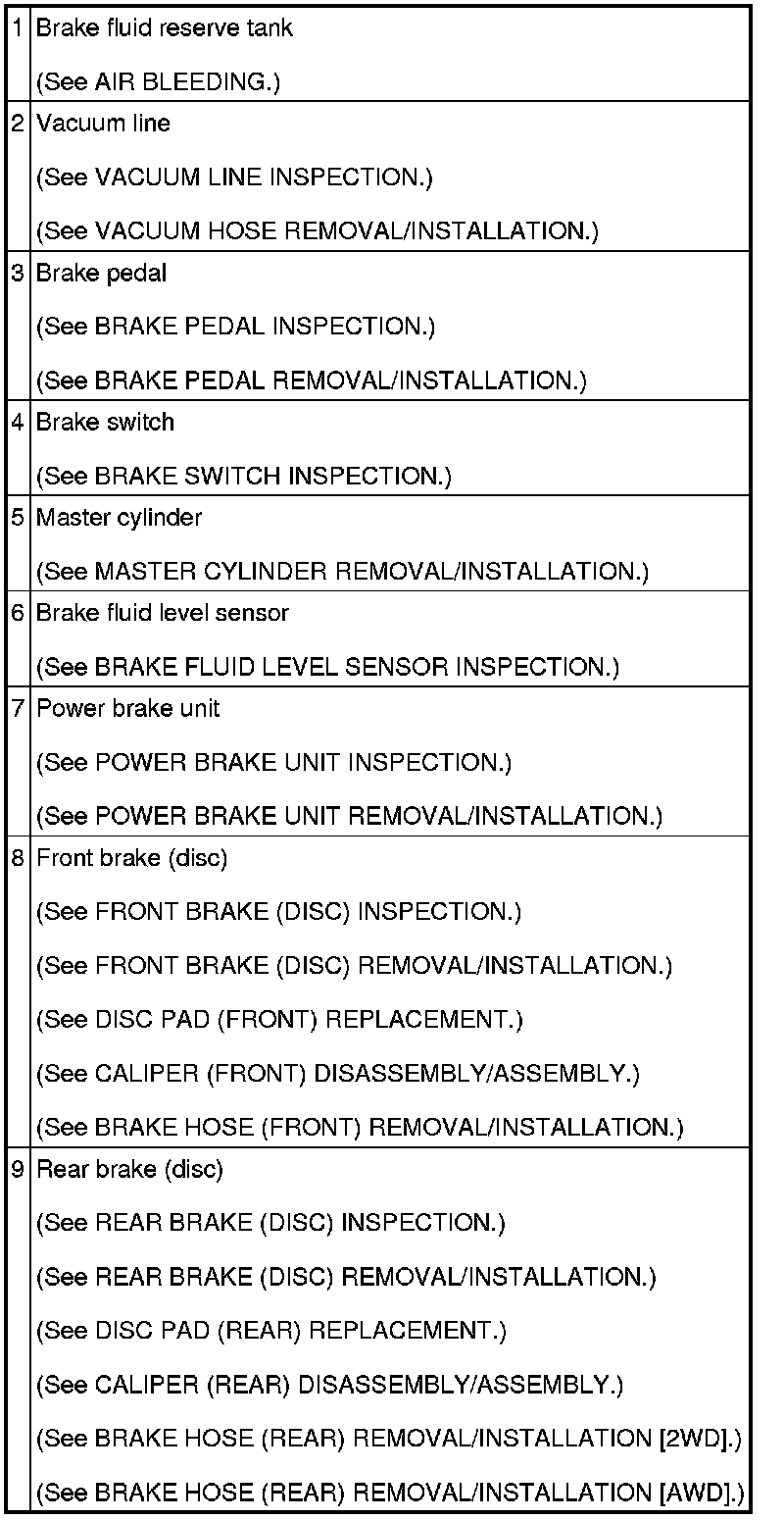 CONVENTIONAL BRAKE SYSTEM LOCATION INDEX
