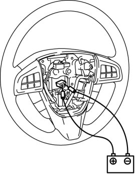 6. Apply battery positive voltage to clock spring connector terminal O (part wiring harness-side), and terminal E (part wiring harness-side) to ground.