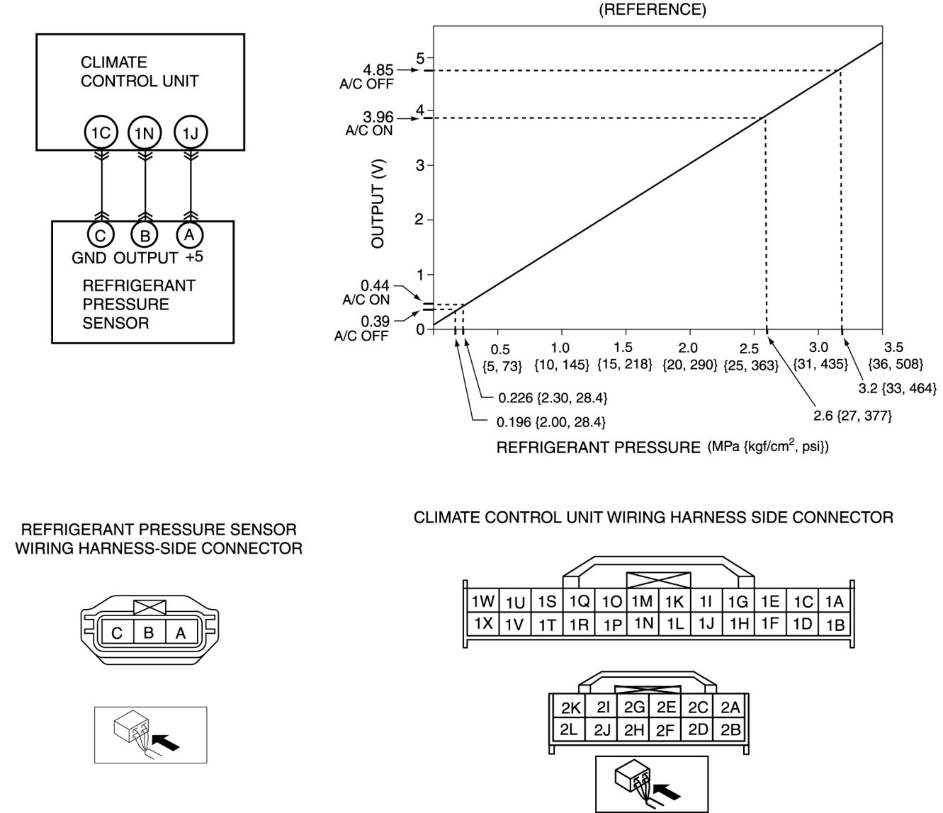 - If wiring harness is normal, replace the refrigerant pressure sensor.