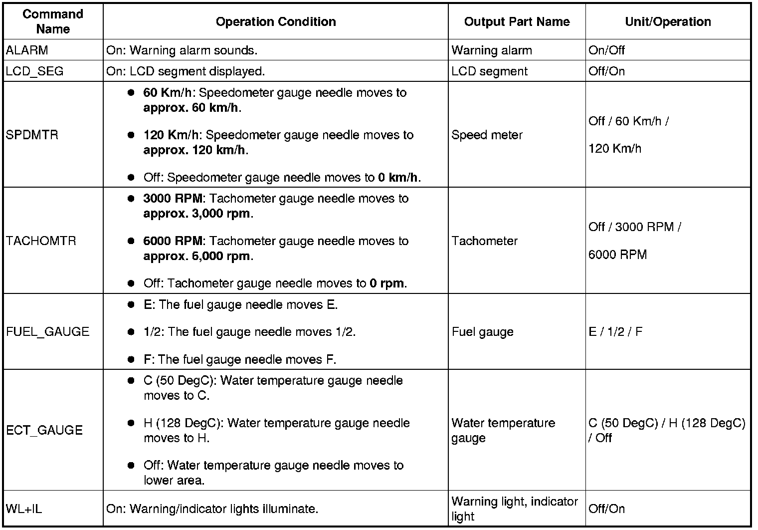 ACTIVE COMMAND MODES TABLE [INSTRUMENT CLUSTER]