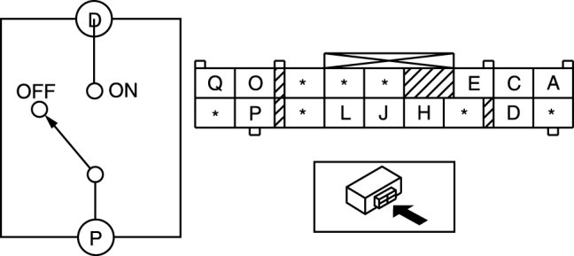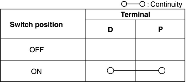 Verify that the continuity between the front fog light switch terminals is as indicated in the table.