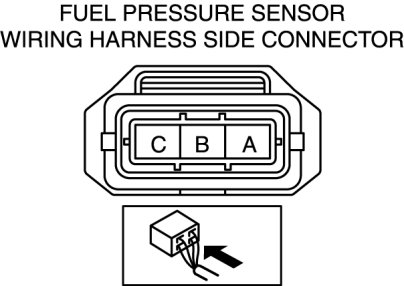 - Fuel pressure sensor terminal A and PCM terminal 2P
