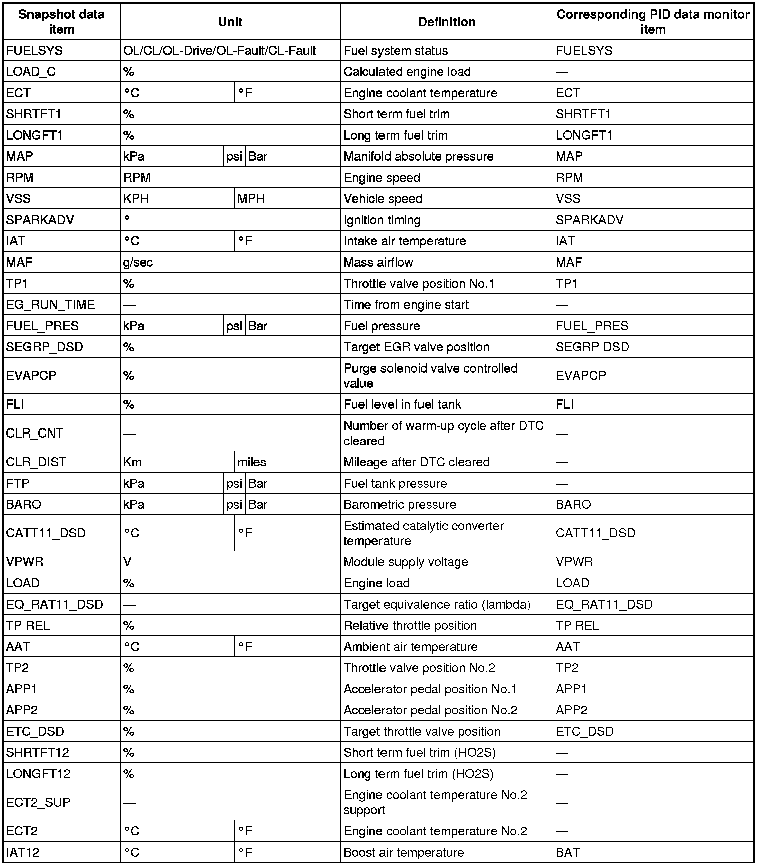 - Snapshot data items are not displayed, according to detected DTC.