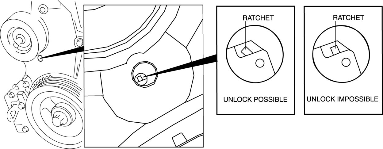 - If the tensioner arm cannot be secured, return the bolt to its original position and repeat the procedure from Step 3.