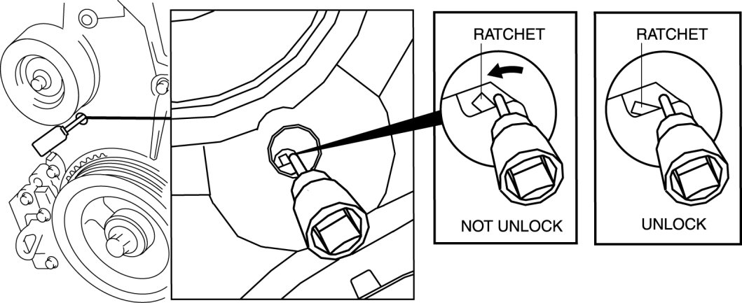 - If the timing chain tension cannot be released with the ratchet tilted, remove the engine front cover before performing the procedure.