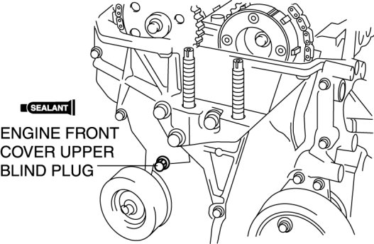 37. Apply the silicone sealant and install the engine front cover upper blind plug.
