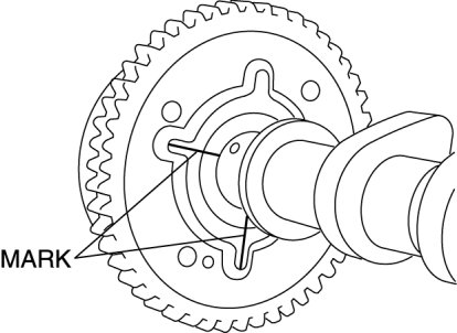 a. Place alignment marks on the camshaft and variable valve timing actuator as shown in the figure so that the variable valve timing actuator is re-assembled in its original position.