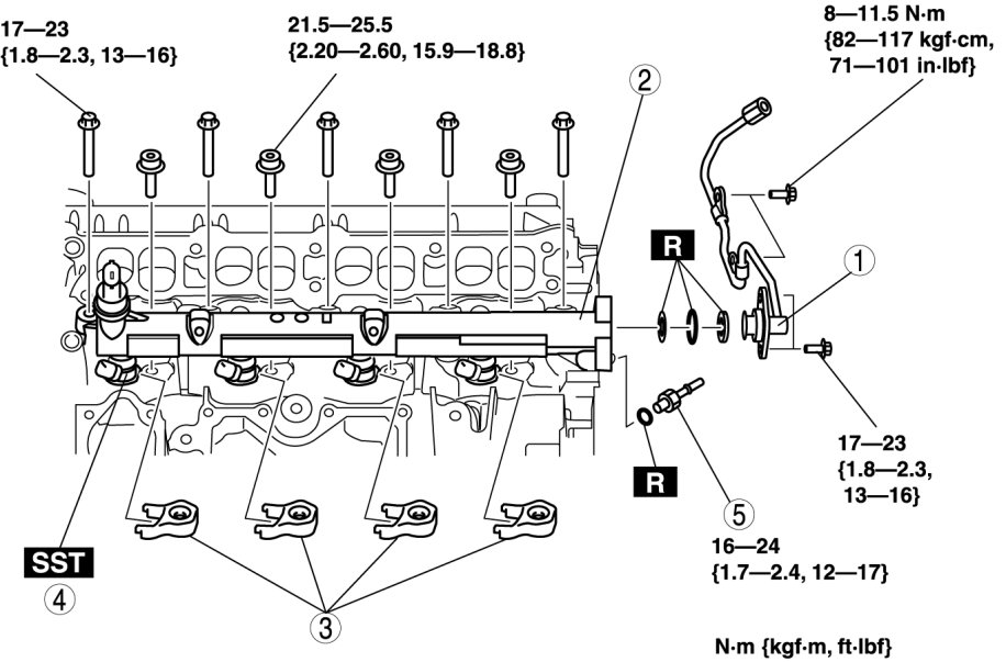 - 17-23 Nm {1.8-2.3 kgf-m, 13-16 ft-lbf}
