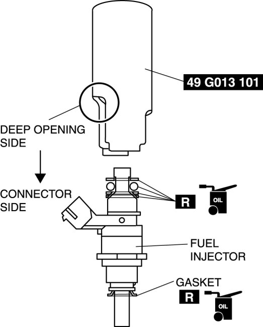 - Do not apply excessive force to the fuel injector connector because the fuel injector could be damaged.