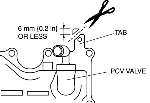 - If fuel injector No.3 contacts the oil separator, cut the tab on the oil separator as shown in the figure. Carefully cut the tab so that the oil separator is not deformed or damaged, with no clearance on the mating surfaces of the oil separator and engine.