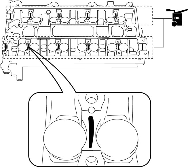 23. Apply the gear oil (SAE No. 90 or equivalent) to each journal of the cylinder head as shown in the figure.