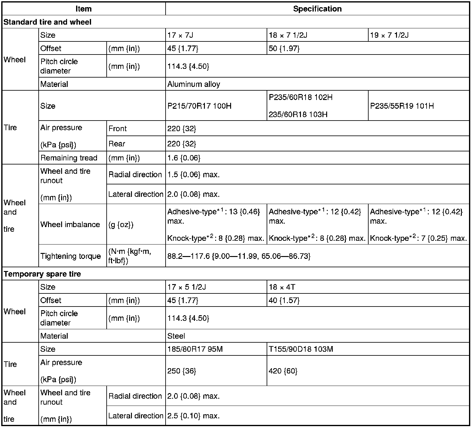 One balance weight: 60 g {2.12 oz} max. If the total weight exceeds 100 g {3.53 oz} on one side, rebalance after moving the tire around on the rim. Do not use three or more balance weights.
