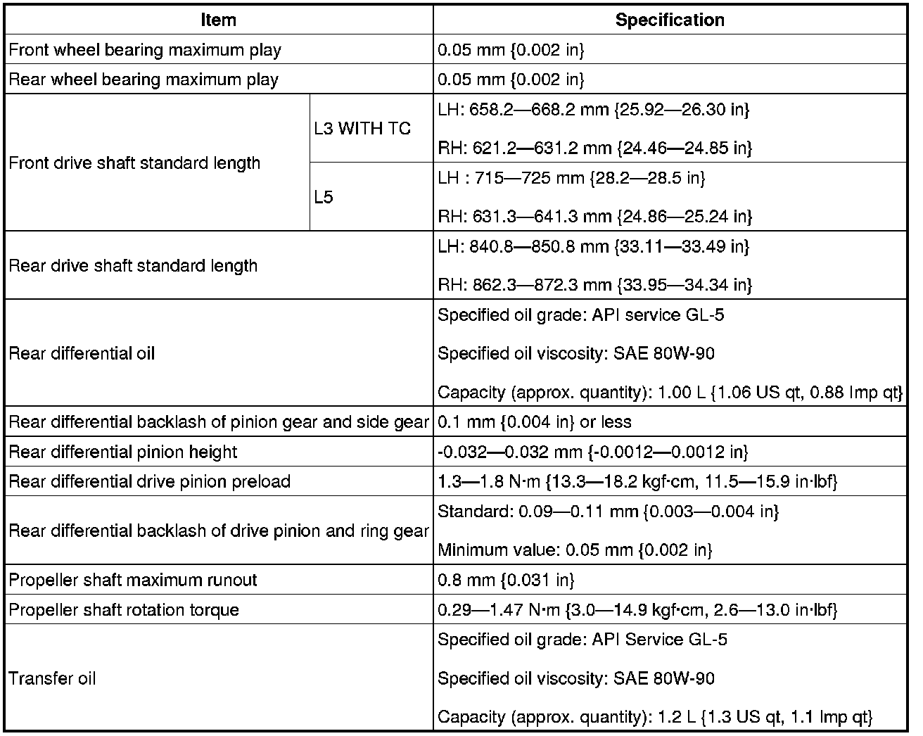 DRIVELINE/AXLE TECHNICAL DATA