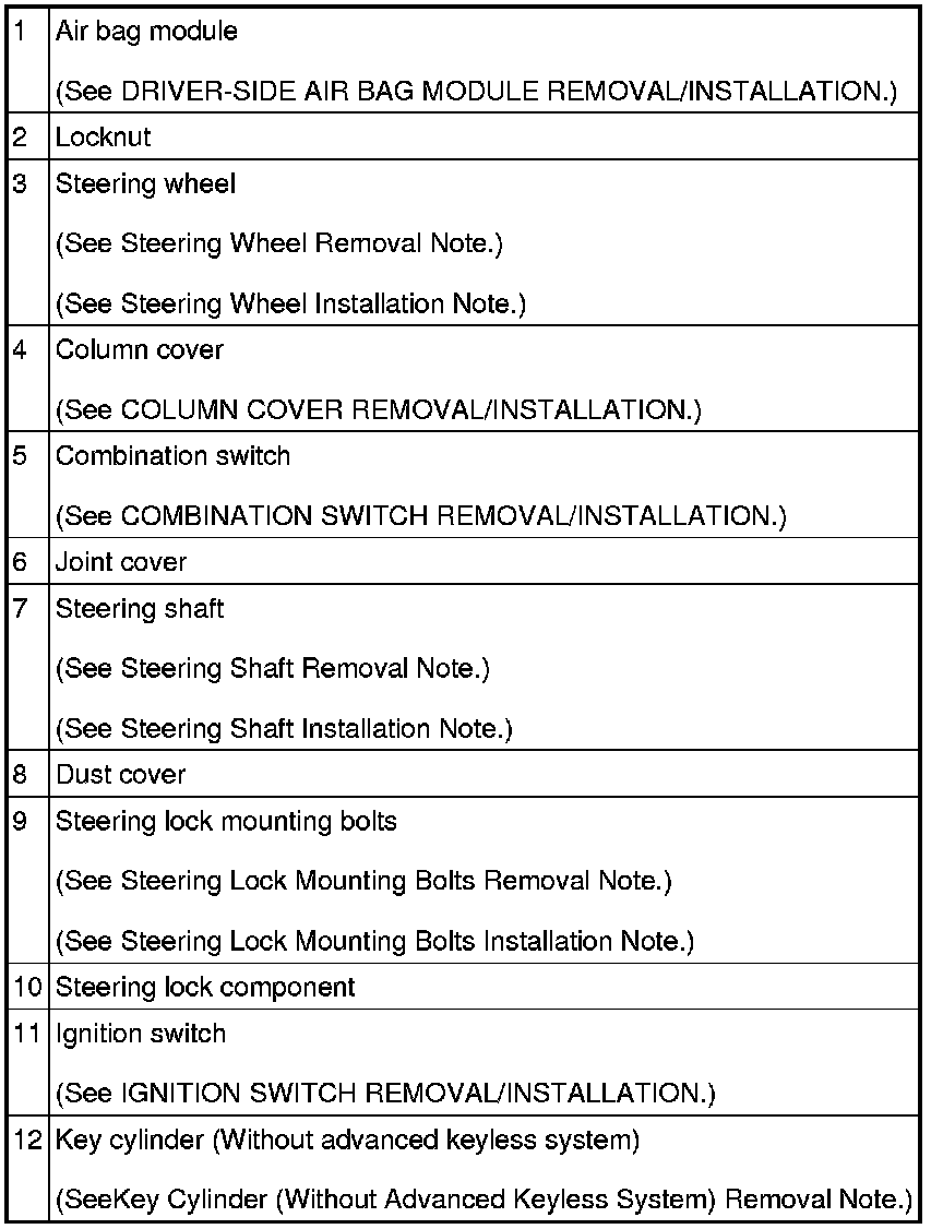 STEERING WHEEL AND COLUMN REMOVAL/INSTALLATION