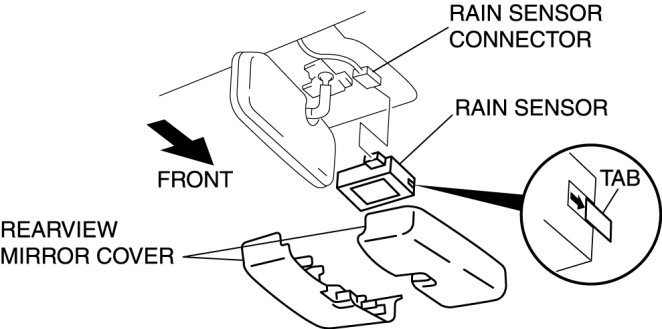 4. Slide the tab in the direction of the arrow and remove the rain sensor.
