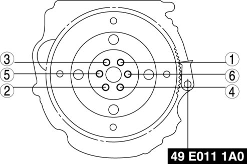 FS5A-ELTighten the drive plate mounting bolts in two or three steps in the order as shown in the figure.