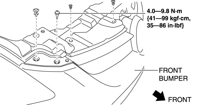 1. Remove the front bumper fitting screw and fasteners as shown in the figure to remove the upper mount rubber bracket.