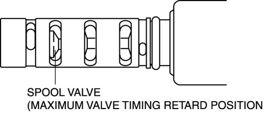 2. Verify that the spool valve in the OCV is in the maximum valve timing retard position as indicated in the figure.