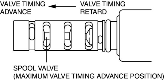 5. Stop applying battery positive voltage and verify that the spool valve returns to the maximum valve timing retard position.