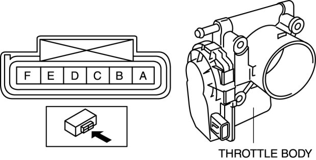 3. Measure the resistance between throttle body terminals E and F.