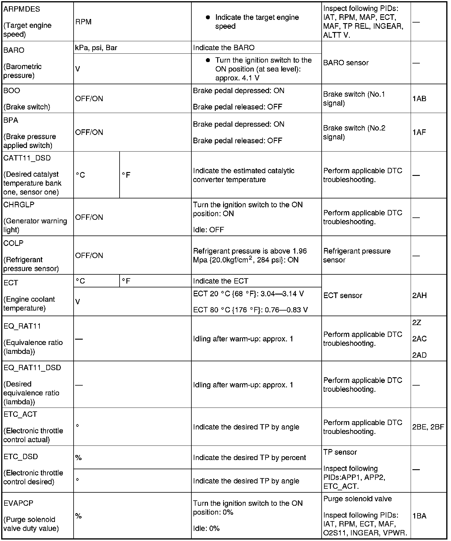 - Following PIDs are for the ATX models. If inspects for following PIDs, PID/Data Monitor Inspection