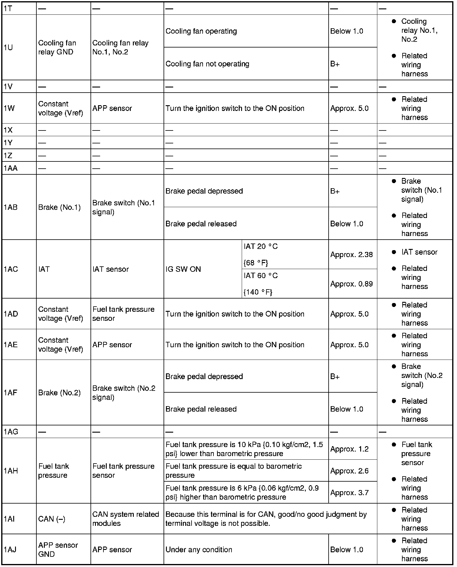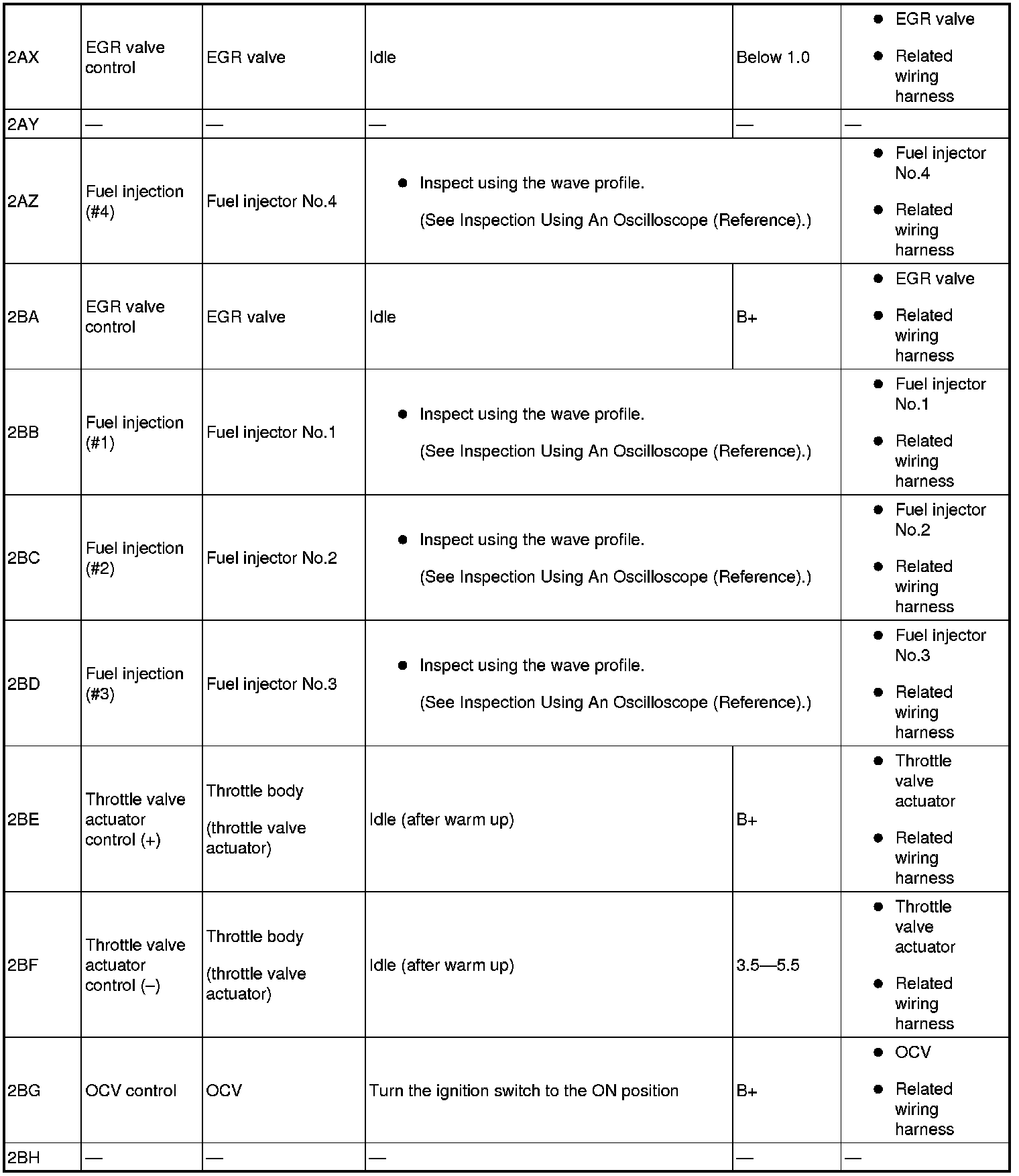 - Fuel Injection No.1: 2BB(+)-body ground(-)