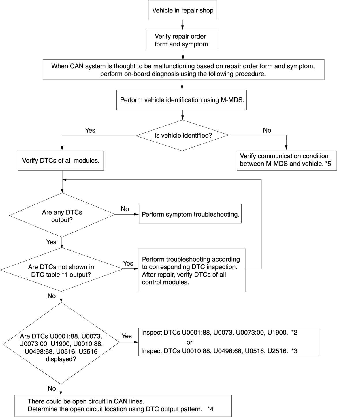 - If the CAN system is considered to be the cause of the malfunction based on the repair order form and the malfunctioning symptom, follow the Troubleshooting Procedure.