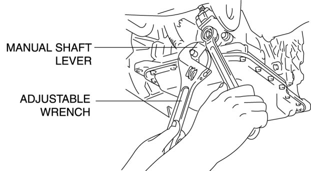 1. Set the adjustable wrench as shown to hold the manual shaft lever and tighten the manual shaft nut.
