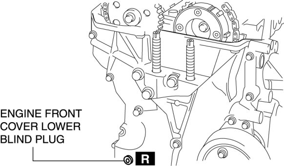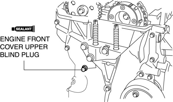 - Install the engine front cover upper blind plug before the applied silicone sealant starts to harden.