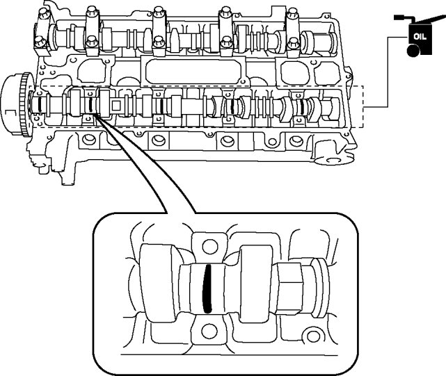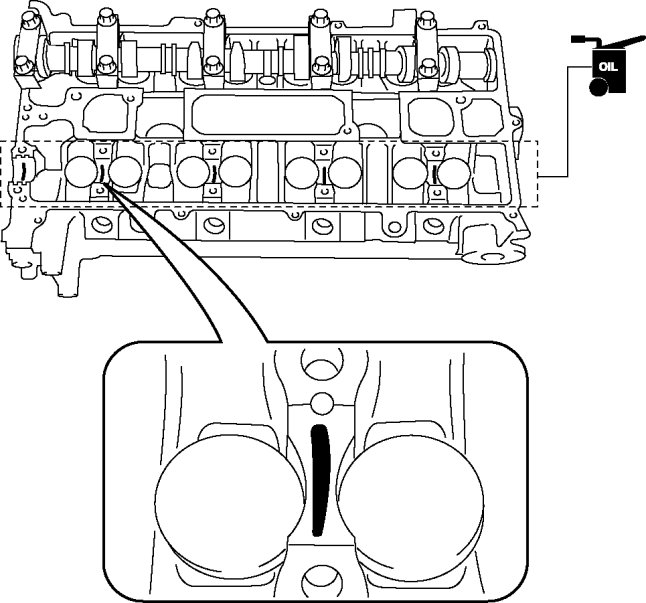 28. Apply the gear oil (SAE No.90 or equivalent) to each journal of the cylinder head as shown in the figure.