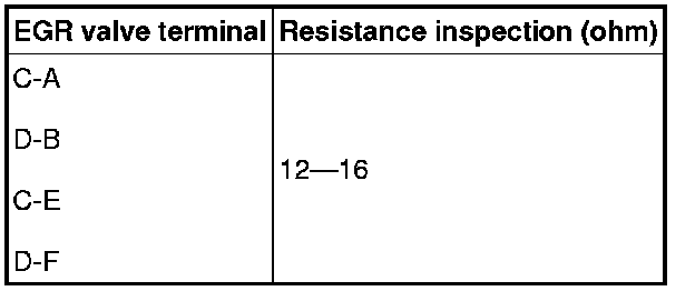 3. Measure the resistance between the EGR valve terminals.