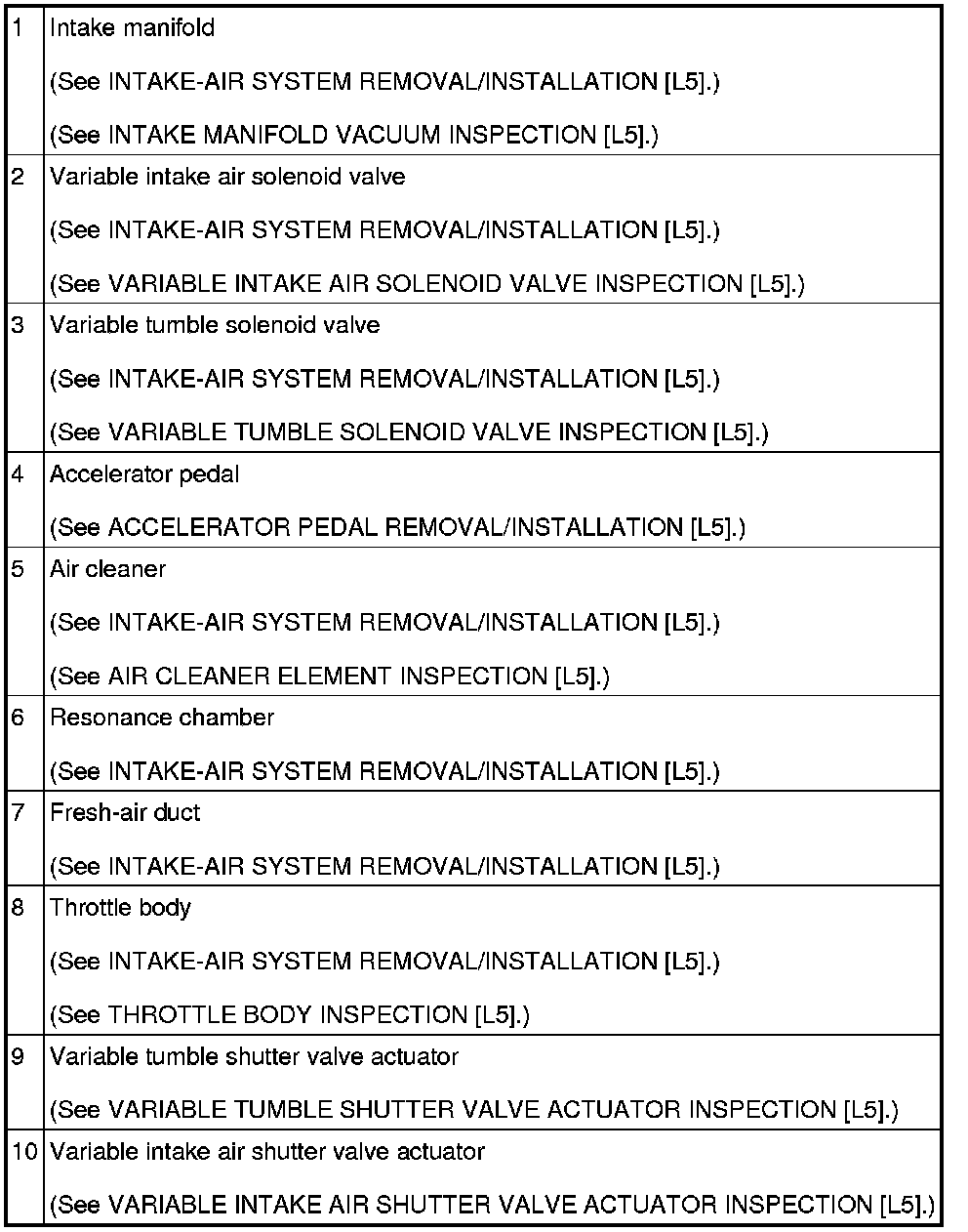 INTAKE-AIR SYSTEM LOCATION INDEX [L5]