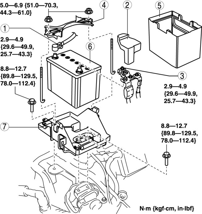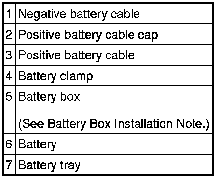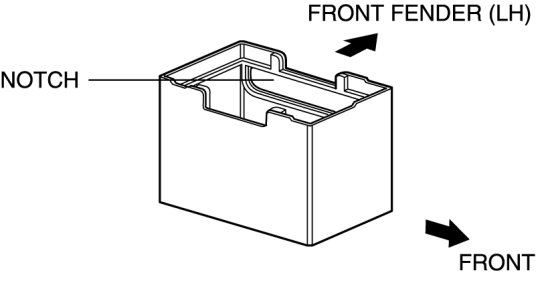 1. Install the battery box so that the side with the notch points toward the front fender (LH).
