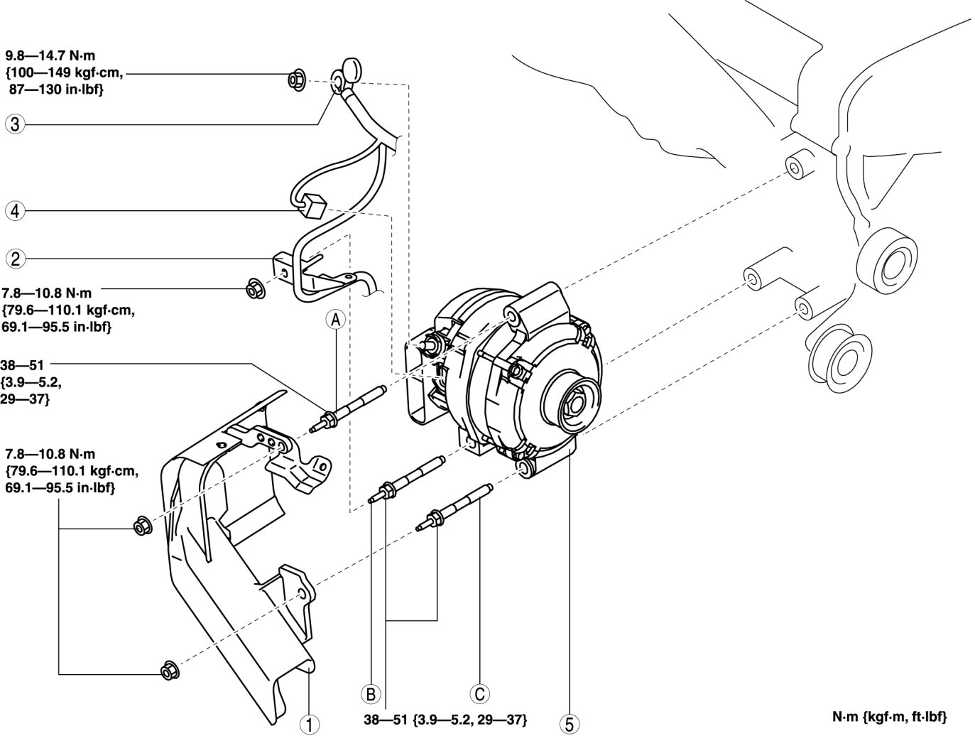 2. Tighten bolt B, C to the specified tightening torque.