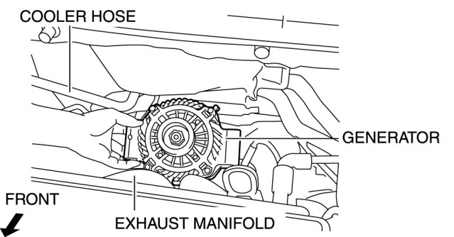 - When the battery cables are connected, touching the vehicle body with generator terminal B will generate sparks. This can cause personal injury, fire, and damage to the electrical components. Always disconnect the negative battery cable before performing the following operation.
