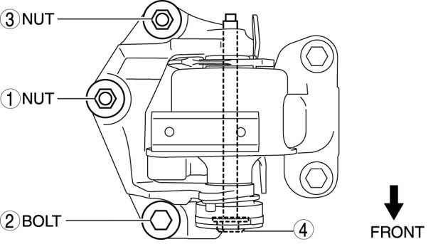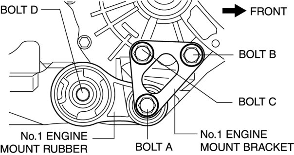 4. Tighten the No.1 engine mount installation bolts in the order of A->B->C->D.