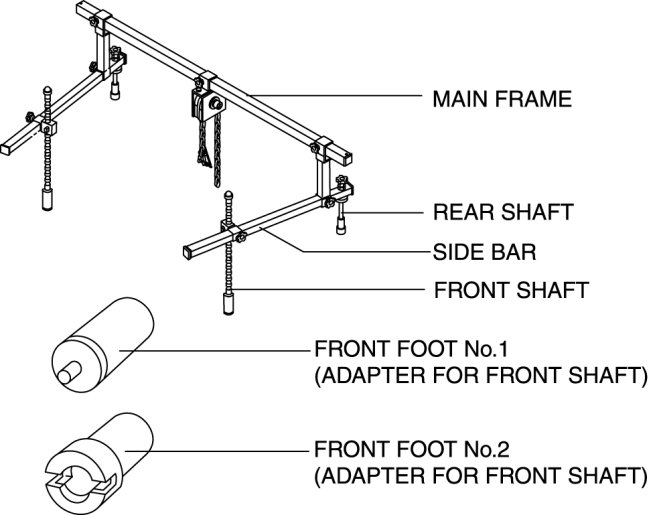 c. Temporarily tighten the air clear bracket installation bolt, and install the left/right front shaft of the SST with front foot No.2 to the bolt as shown in the figure.
