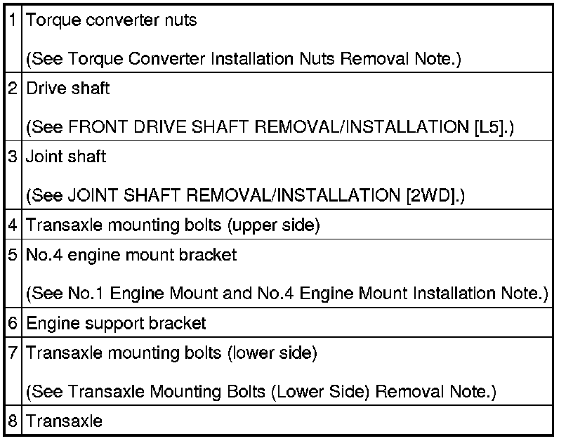 Transaxle Mounting Bolts (Lower Side) Removal Note