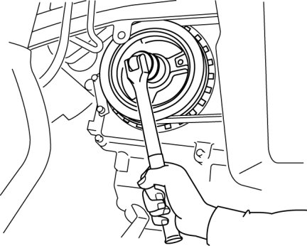 1. Hold the crankshaft pulley to prevent drive plate from rotating.