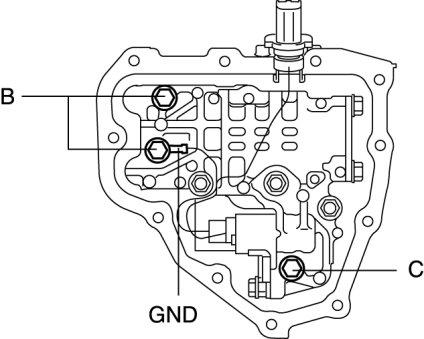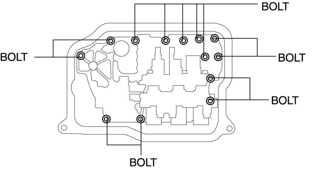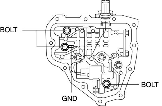 8. Remove the bolts and GND as shown, then remove the secondary control valve body.