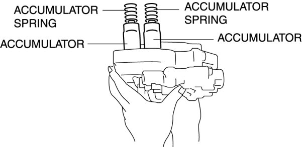 9. Remove the accumulators and accumulator springs.